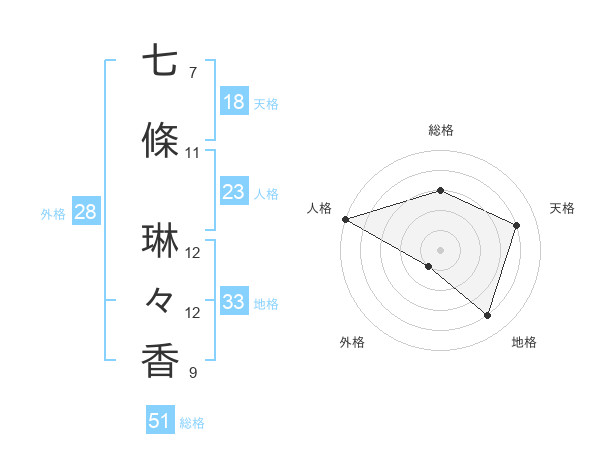 七條 琳々香さんを姓名の画数から五運を鑑定