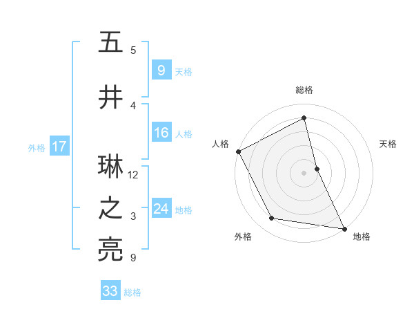 五井 琳之亮さんを姓名の画数から五運を鑑定
