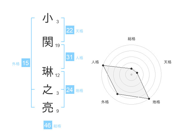 小関 琳之亮さんを姓名の画数から五運を鑑定