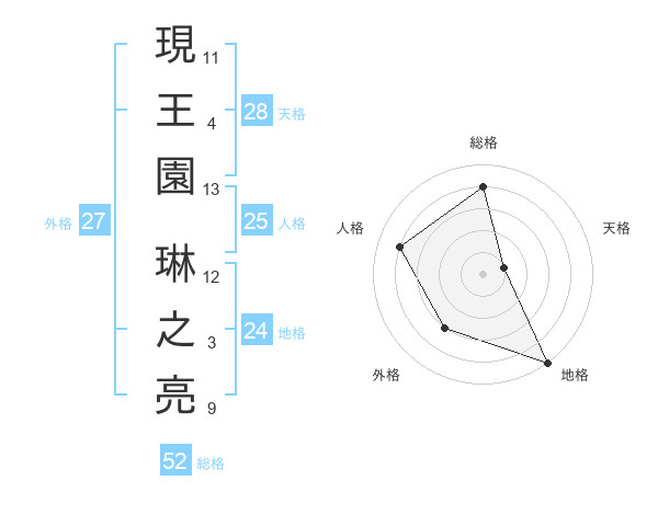 現王園 琳之亮さんを姓名の画数から五運を鑑定