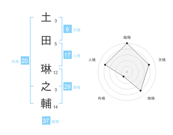 土田 琳之輔さんを姓名の画数から五運を鑑定