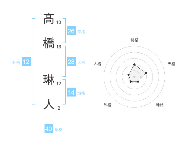 髙橋 琳人さんの総格は40画の2点!