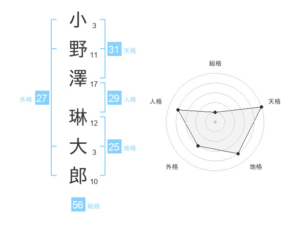 小野澤 琳大郎さんの天格は31画の5点!