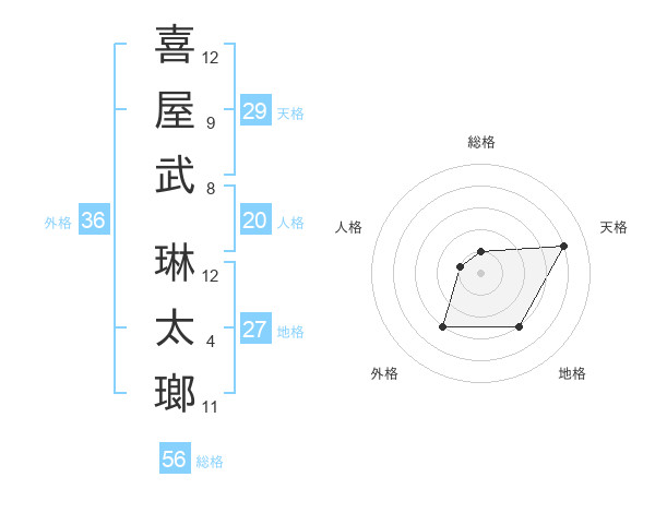喜屋武 琳太瑯さんの天格は29画の4点!