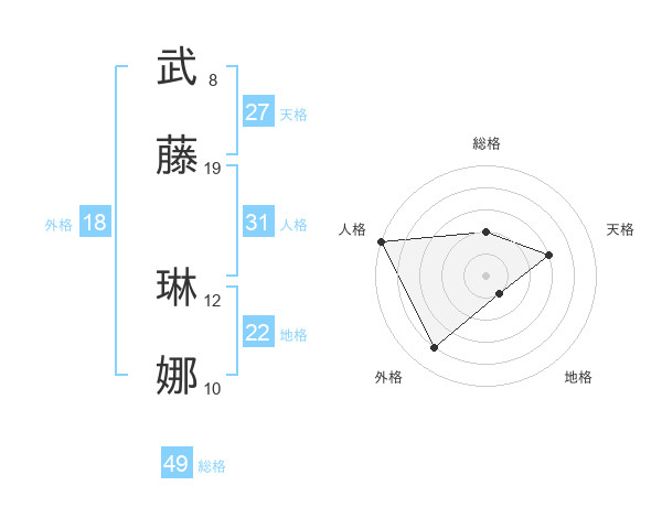 武藤 琳娜さんの天格は27画の3点!