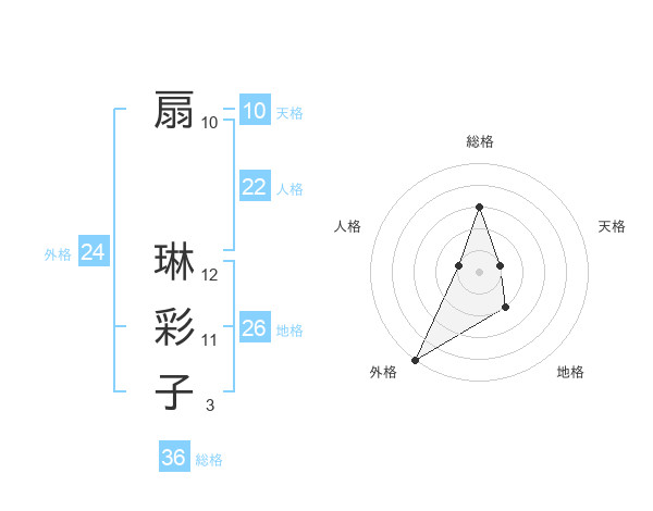 扇 琳彩子さんの外格は24画の5点!