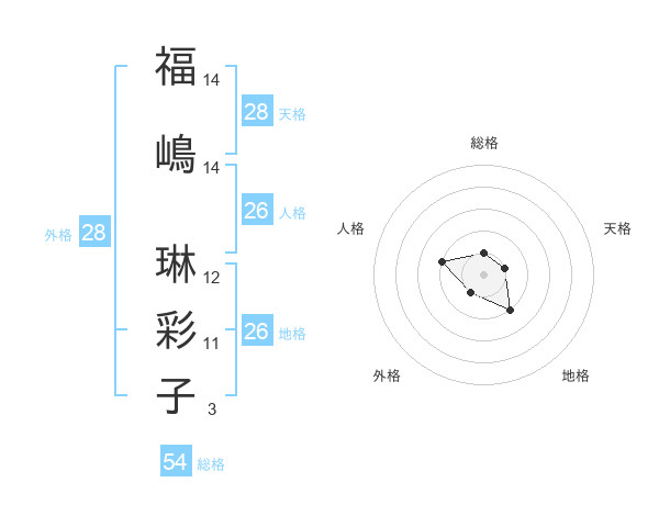 福嶋 琳彩子さんの天格は28画の1点!