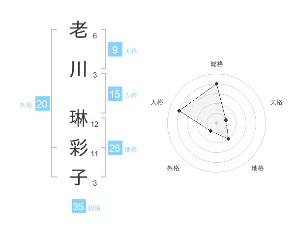 老川 琳彩子さんの総格は35画の4点!