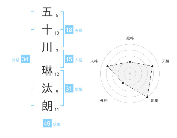 五十川 琳汰朗さんを姓名の画数から五運を鑑定