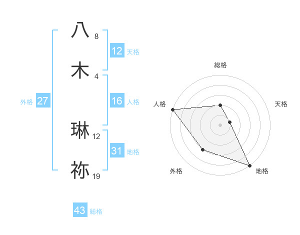 八木 琳祢さんを姓名の画数から五運を鑑定