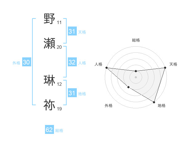 野瀬 琳祢さんを姓名の画数から五運を鑑定