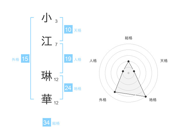 小江 琳華さんの総格は34画の2点!