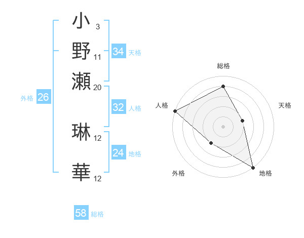 小野瀬 琳華さんの総格は58画の4点