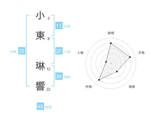 小東 琳響さんの総格は45画の4点!
