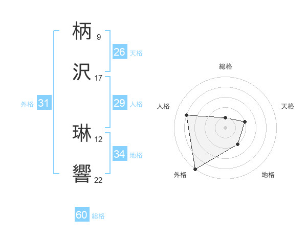 柄沢 琳響さんを姓名の画数から五運を鑑定