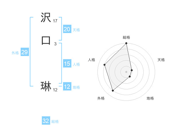 沢口 琳さんの総格は32画の5点!
