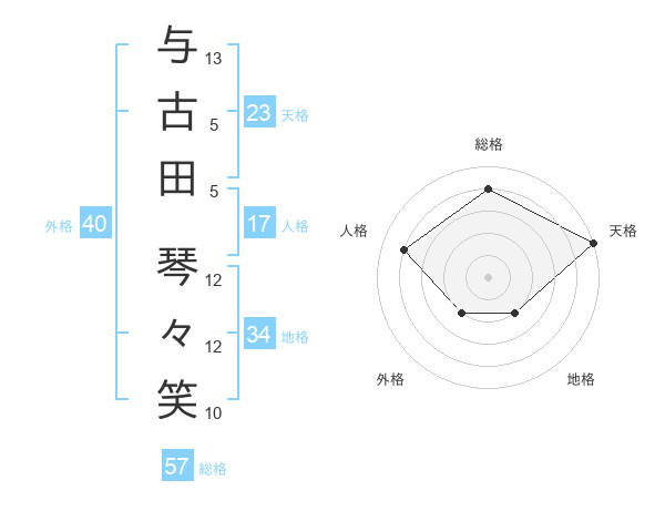 与古田 琴々笑さんを姓名の画数から五運を鑑定