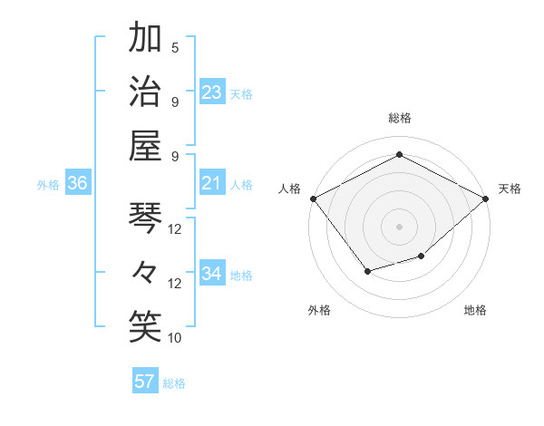 加治屋 琴々笑さんの総格は57画の4点!