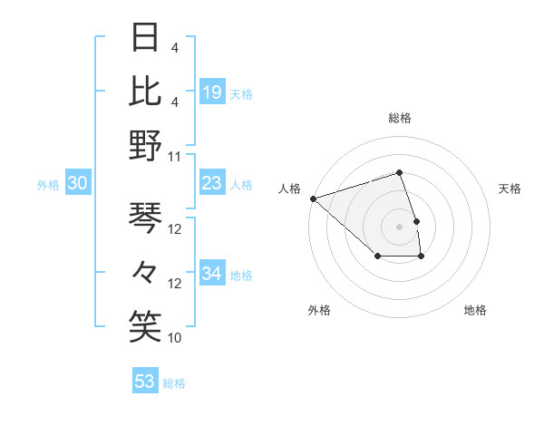 日比野 琴々笑さんを姓名の画数から五運を鑑定
