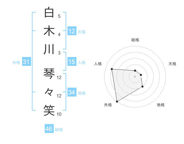 白木川 琴々笑さんを姓名の画数から五運を鑑定