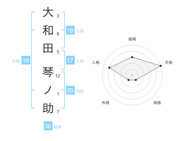 大和田 琴ノ助さんを姓名の画数から五運を鑑定