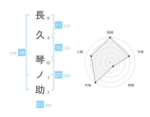 長久 琴ノ助さんを姓名の画数から五運を鑑定