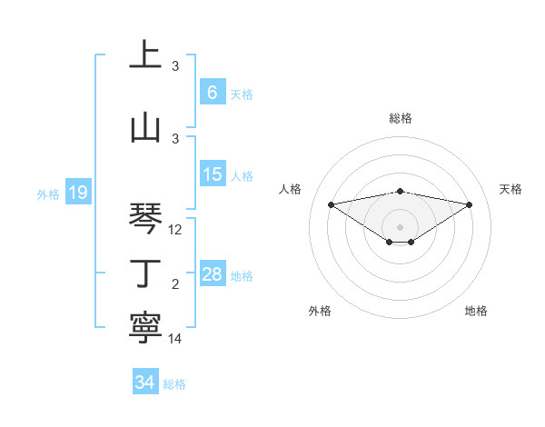 上山 琴丁寧さんの総格は34画の2点!