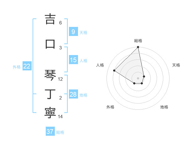 吉口 琴丁寧さんの総格は37画の5点!