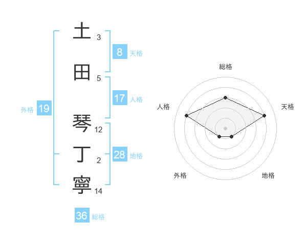 土田 琴丁寧さんを姓名の画数から五運を鑑定