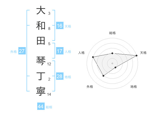 大和田 琴丁寧さんを姓名の画数から五運を鑑定