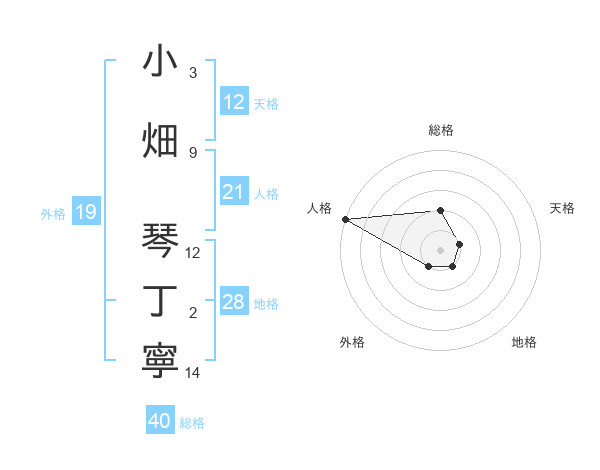 小畑 琴丁寧さんを姓名の画数から五運を鑑定