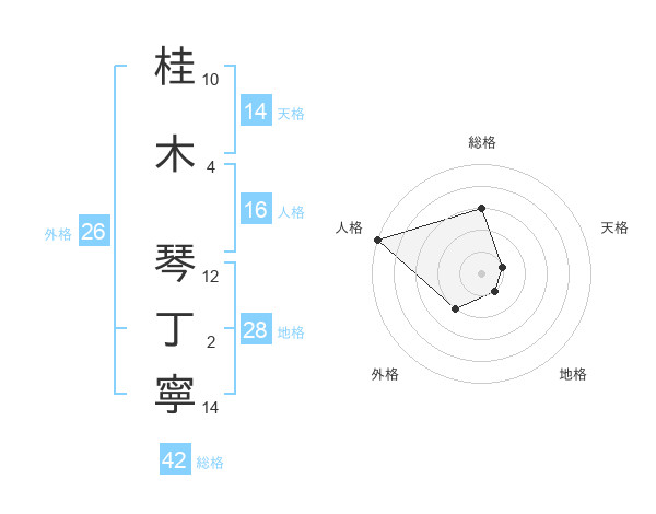 桂木 琴丁寧さんを姓名の画数から五運を鑑定