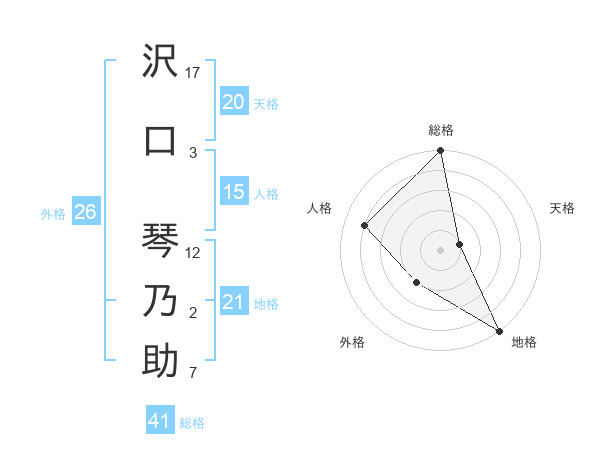 沢口 琴乃助さんを姓名の画数から五運を鑑定