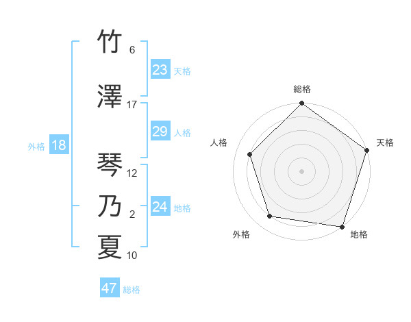 竹澤 琴乃夏さんを姓名の画数から五運を鑑定