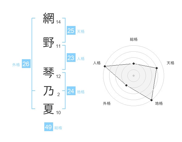 網野 琴乃夏さんを姓名の画数から五運を鑑定