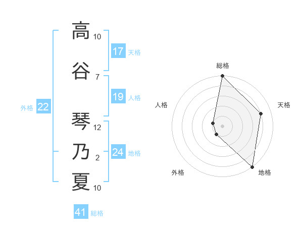 高谷 琴乃夏さんの総格は41画の5点