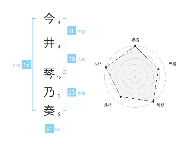 今井 琴乃奏さんを姓名の画数から五運を鑑定