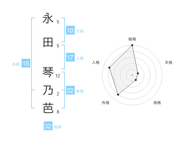 永田 琴乃芭さんを姓名の画数から五運を鑑定