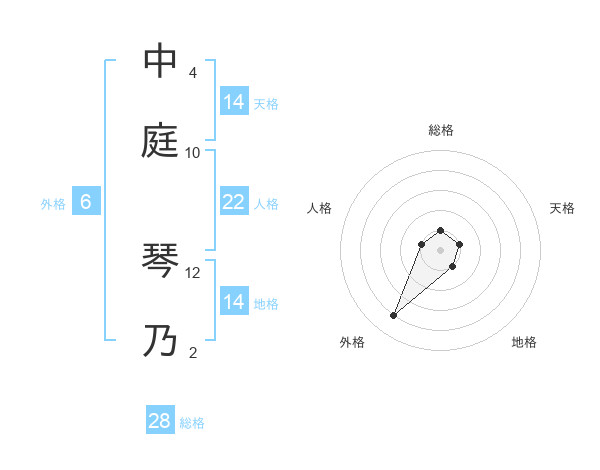 中庭 琴乃さんを姓名の画数から五運を鑑定