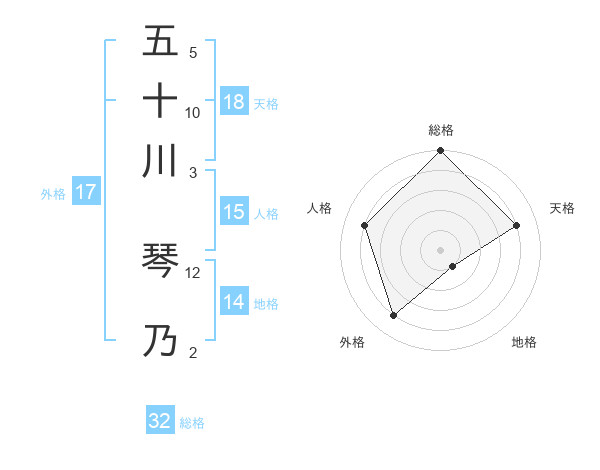 五十川 琴乃さんを姓名の画数から五運を鑑定