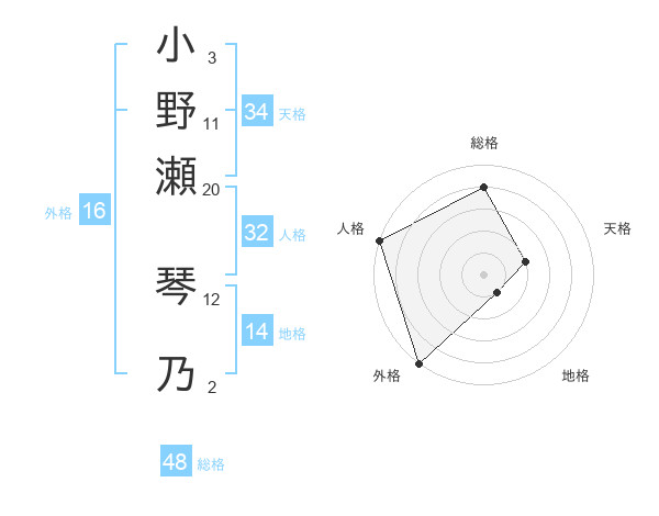 小野瀬 琴乃さんを姓名の画数から五運を鑑定