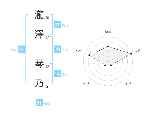 瀧澤 琴乃さんを姓名の画数から五運を鑑定