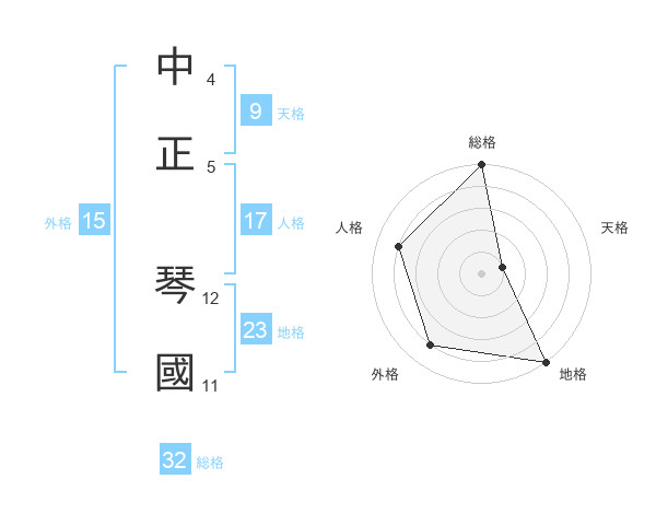 中正 琴國さんの総格は32画の5点!