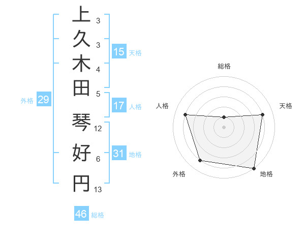 上久木田 琴好円さんを姓名の画数から五運を鑑定