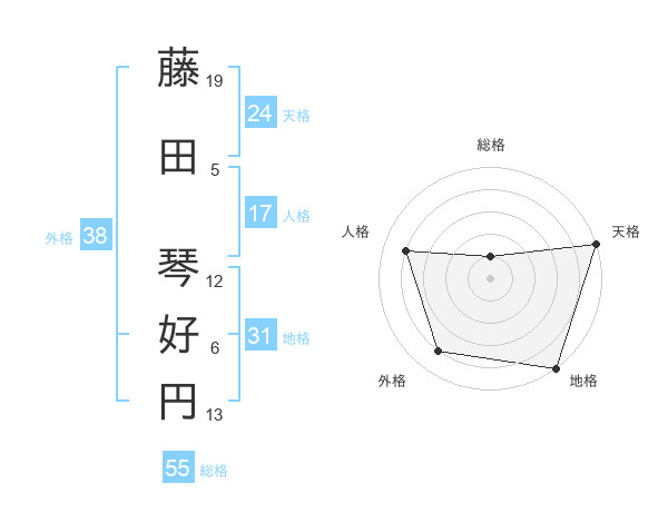 藤田 琴好円さんを姓名の画数から五運を鑑定