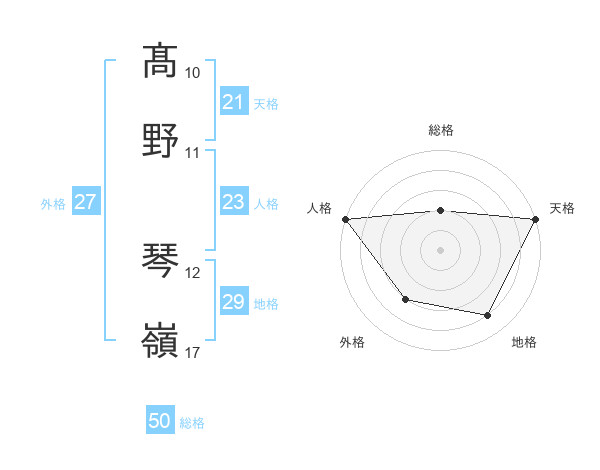 髙野 琴嶺さんを姓名の画数から五運を鑑定