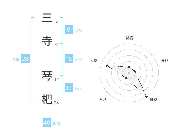 三寺 琴杷さんを姓名の画数から五運を鑑定