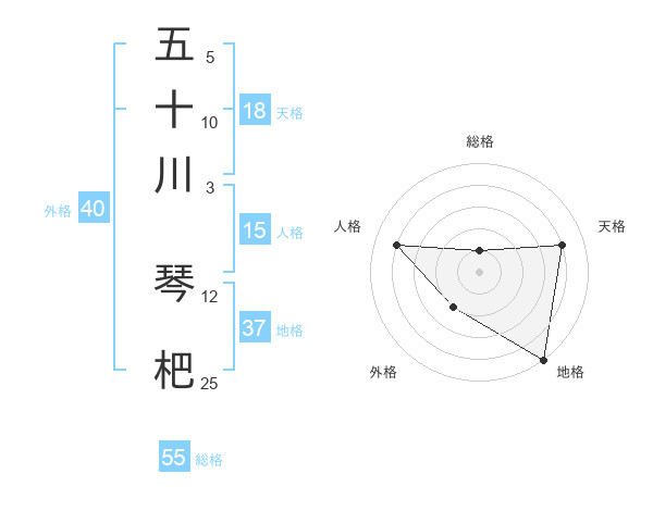 五十川 琴杷さんの総格は55画の1点!