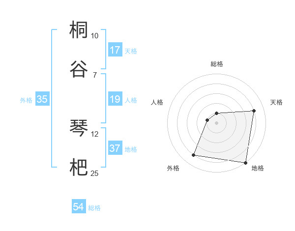桐谷 琴杷さんを姓名の画数から五運を鑑定