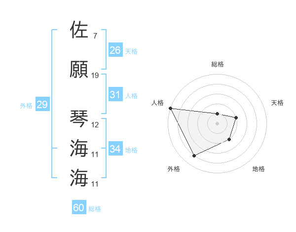 佐願 琴海海さんを姓名の画数から五運を鑑定